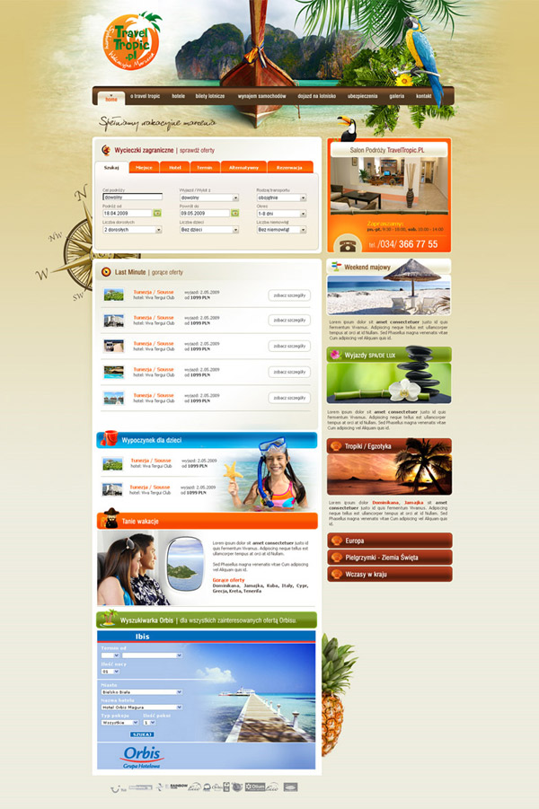 Travel Tropic oferuje podróże spośród znanych i lubianych tour-operatorów. Biuro podpisało umowy z ponad osiemdziesięcioma operatorami specjalizującymi się w różnych kierunkach świata, które na pewno zapewnią wiele niezapomnianych atrakcji. Travel Tropic za każdym razem dokłada starań aby każdy mógł znaleźć coś dla siebie.Aby ułatwić klientom Tropic Travel poszukiwanie podróży życia wykonaliśmy dla biura, oddającą jego charakter i funkcjonalną stronę internetową.